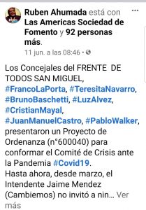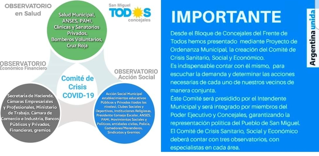 Los Concejales del FRENTE DE TODOS SAN MIGUEL, #FrancoLaPorta, #TeresitaNavarro, #BrunoBaschetti, #LuzAlvez, #CristianMayal, #JuanManuelCastro, #PabloWalker, presentaron un Proyecto de Ordenanza (n°600040) para conformar el Comité de Crisis ante la Pandemia #Covid19.