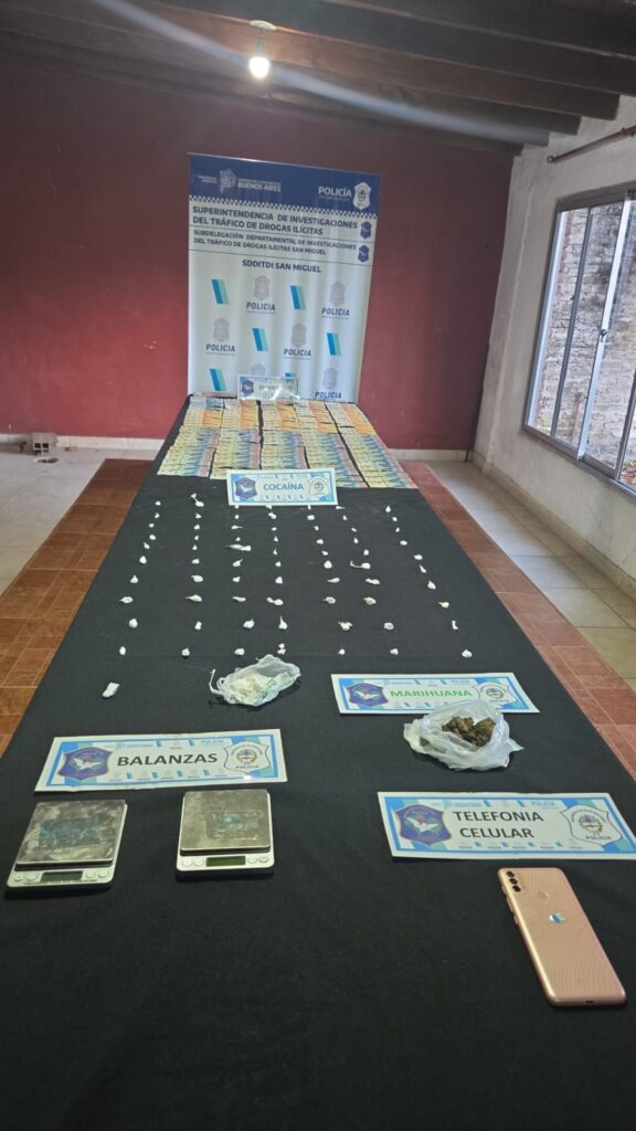 Durante el operativo, se incautaron 63,83 gramos de cocaína, distribuidos en 72 envoltorios de nylon y una bolsa con trozos compactos. También se secuestraron 38,64 gramos de marihuana, junto a dos balanzas, un teléfono celular y $172 mil pesos en efectivo.