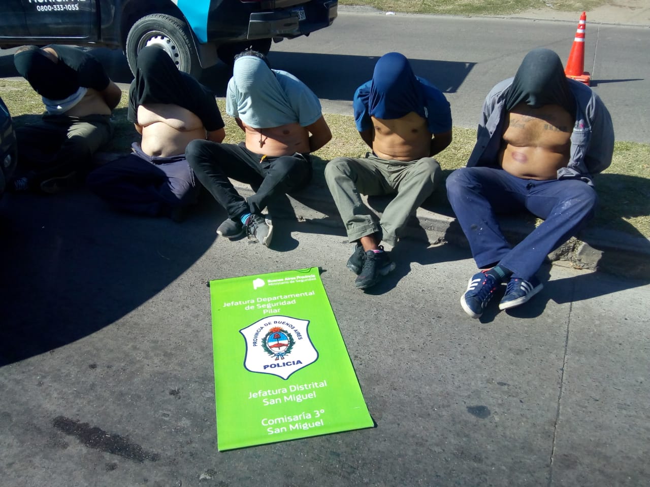 En horas del mediodía de hoy agarramos una banda que hacía entraderas… Este operativo fue hoy en Pichincha y Balbín de San Miguel Oeste, Ciudad Santa María. En este procedimiento se detuvo a cinco individuos de entre 30 y 60 años. La abuela vive y el hecho fue en jurisdicción de José c paz.