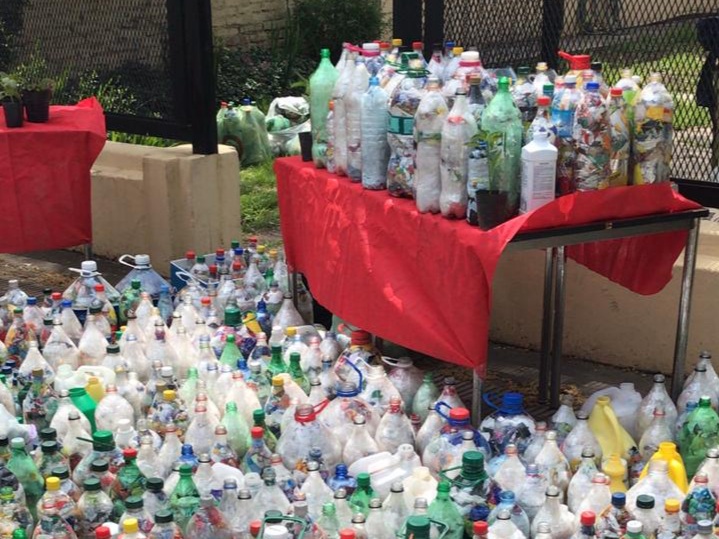 Las “eco botellas” se llenan de plásticos y envoltorios no reciclables que sirven para reemplazar