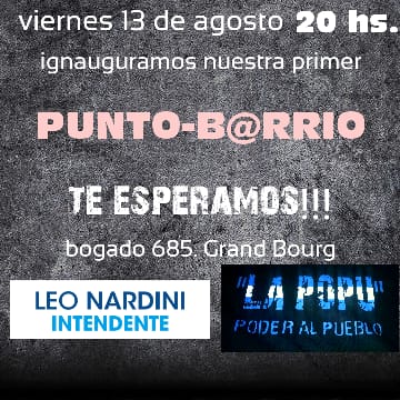 El viernes pasado en el distrito de Malvinas Argentinas se inauguró el primer PUNTO-B@RRIO, ubicado en la calle Bogado 685 de la Ciudad de Grand Bourg, donde los compañeros dieron apertura a un nuevo espacio político-social. Hablamos en el programa “Primera Mañana”, que conduce Gustavo Estigarribia por FM PLUS 88.1, con Leandro Alfonzo su Secretario General.