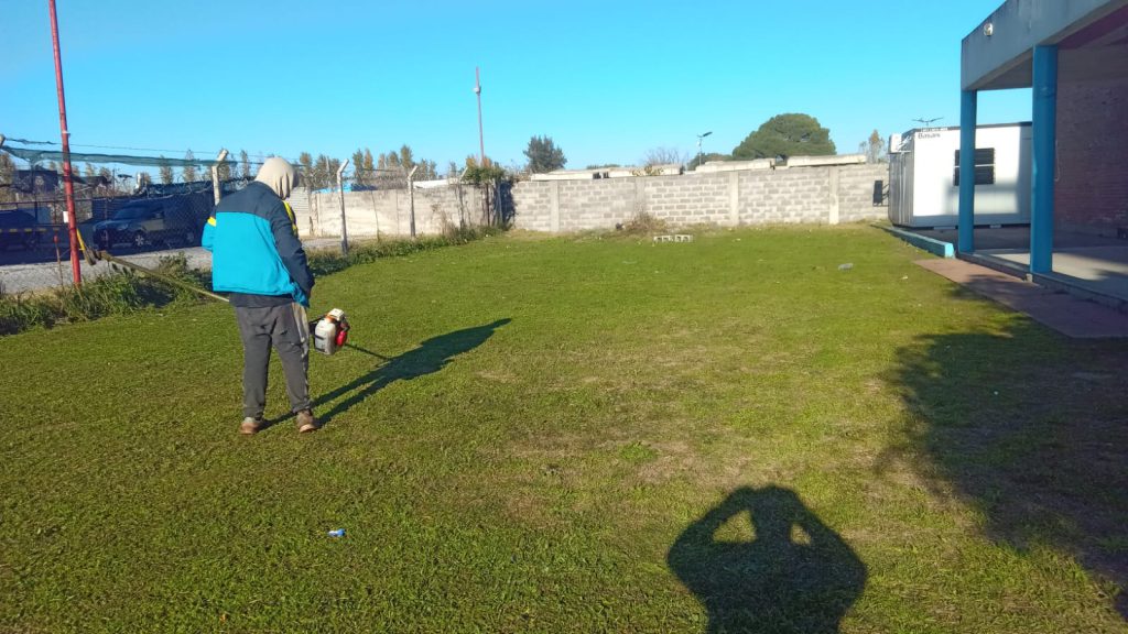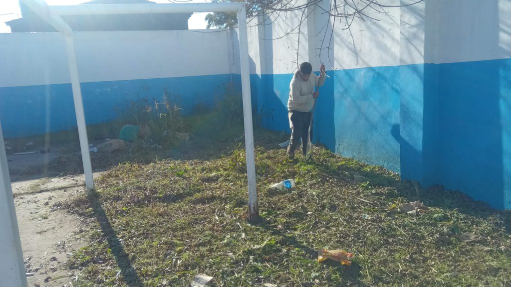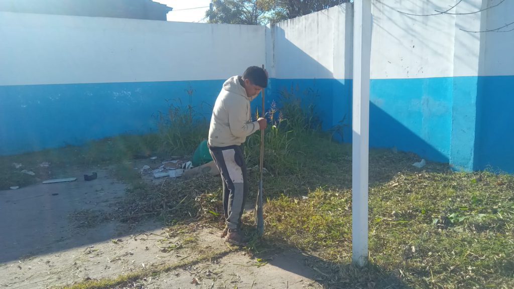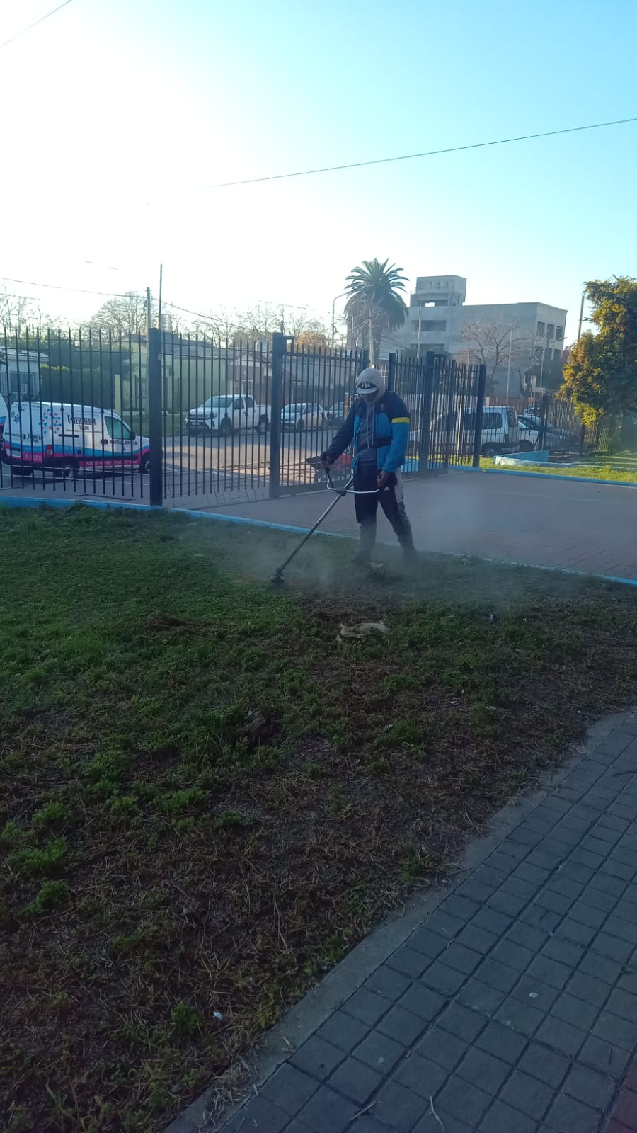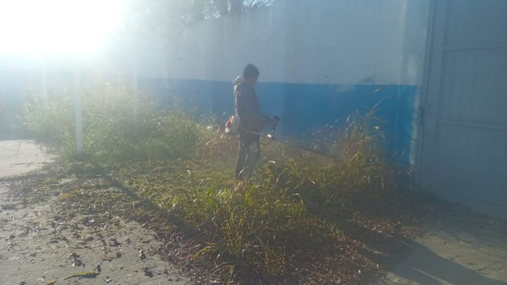 Corte de Pasto, limpieza en general y remodelación del Jardín con colocación de plantas en la Escuela Primaria N° 26, también conocida como Teniente Félix Origone.