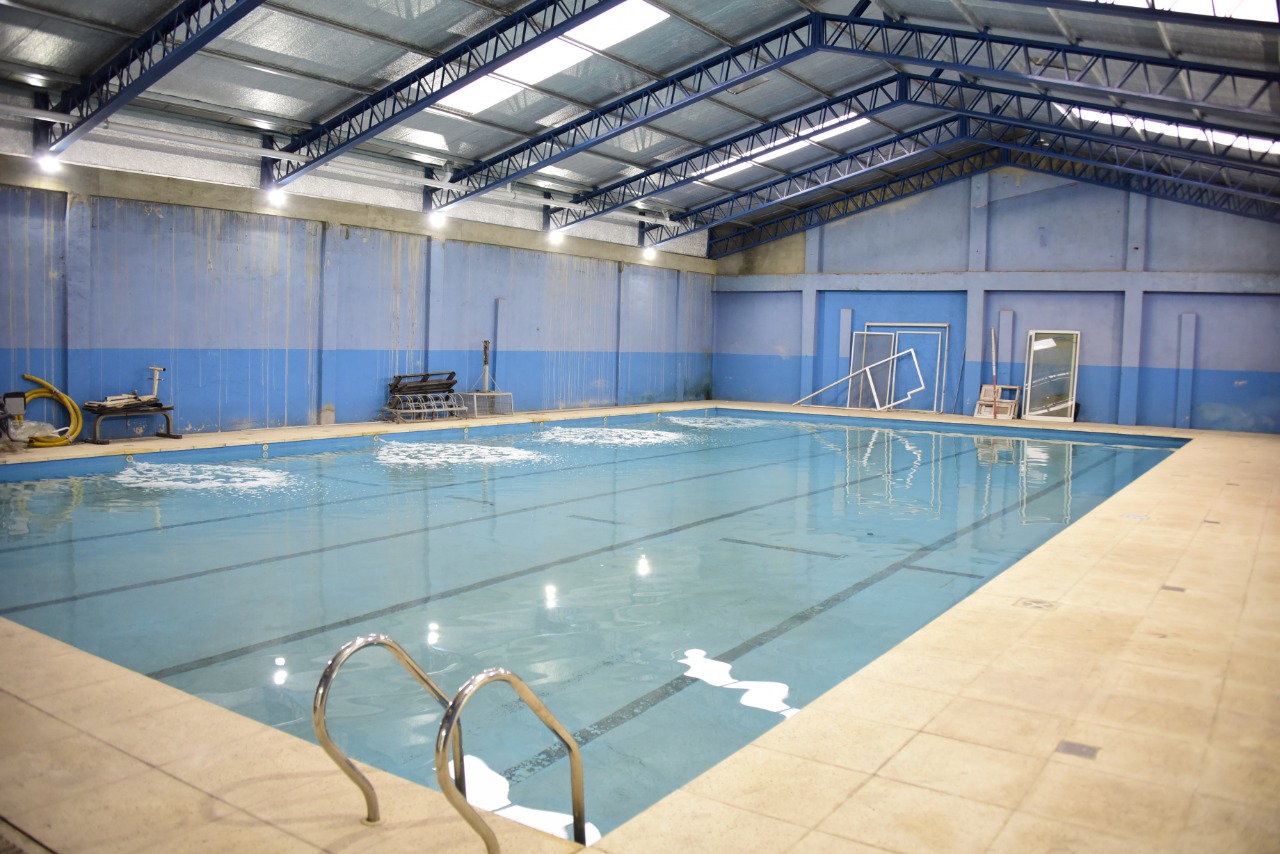 Acompañada por el vicepresidente primero del Senado provincial, Luis Vivona, y el subsecretario de Deporte, Juan Pablo Matas, la jefa comunal estuvo en esta etapa de la obra donde se trabaja en la cubierta de la pileta, el interior completo del edificio, la fachada exterior, baños y vestuarios, recambio de pisos, entre otras tareas.