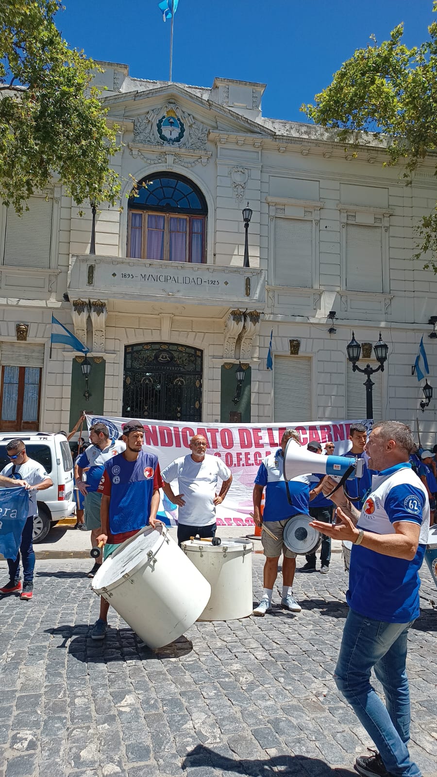 En un jornada de protesta, un sector sindical del rubro alimentos, cortó la calle Tribulato, para luego tomar por Sarmiento hasta la plaza donde se encuentra la puerta principal de la Sede Municipal de San Miguel, llevaban una parrilla móvil que humeaba un aroma movilizánte y apetitoso.
